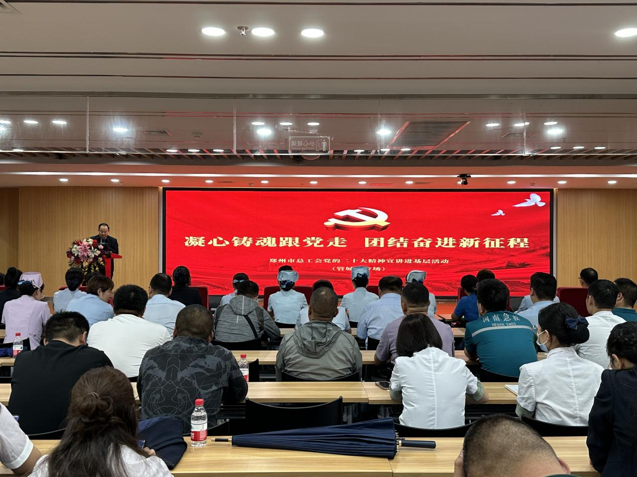 为深入学习宣传贯彻党的二十大精神,大力弘扬劳模精神、劳动精神、工匠精神、发挥劳动模范的榜样示范作用,引领广大职工建功新时代。9月25日下午,由郑州市总工会主办、管城回族区总工会承办、郑州仁济医院协办的“凝心铸魂跟党走 团结奋进新征程”党的二十大精神宣讲进基层活动在仁济医院负一楼报告厅举行。