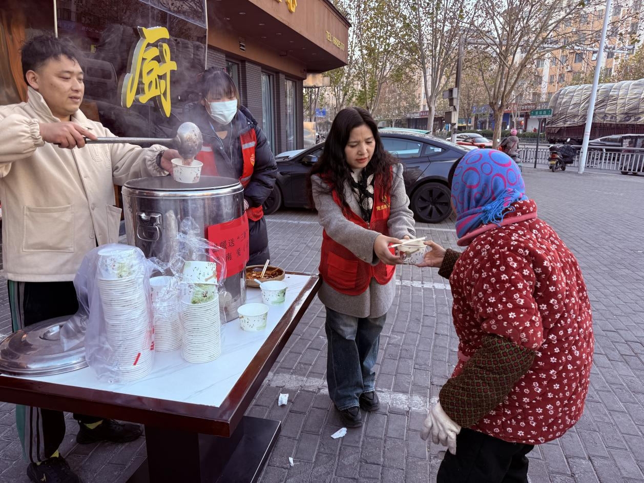 管城区航海东路街道果树所社区工会联合会及裕康社区工会联合会分别开展“情暖腊八,粥到暖人心”送粥活动,社区工作人员早早熬制好香浓的腊八粥,并安排好点位设置和人员分工,在辖区楼院及各主要出入口进行派送。无论是出门上班的年轻人、辛勤劳动的环卫工人,还是晒太阳的老人、玩耍的孩童,都能免费领取到这份饱含心意的腊八粥,品尝到传统节日的独特味道,领取到粥的人们,脸上都洋溢着幸福的笑容。