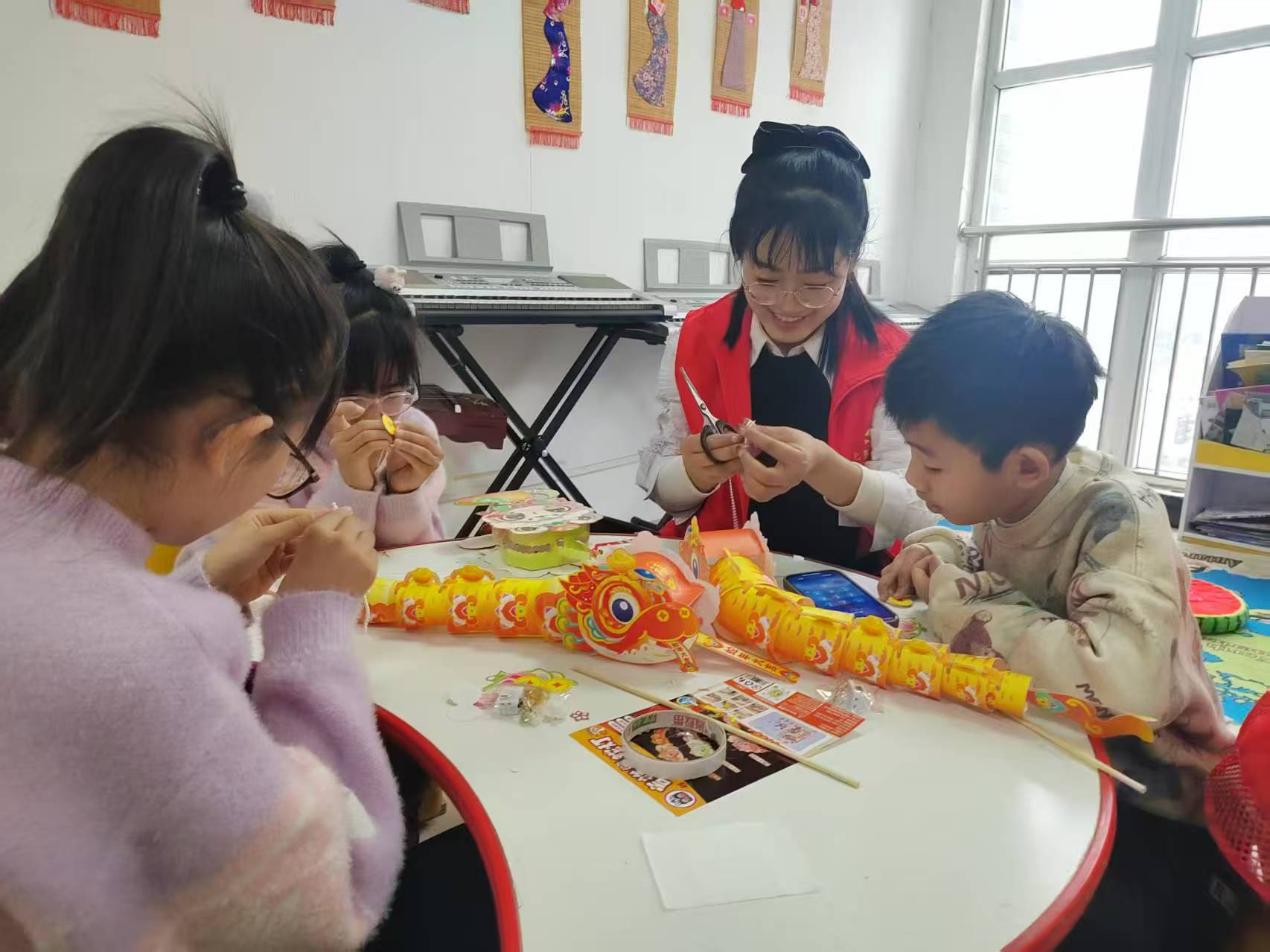 活动中,志愿者老师详细介绍了元宵花灯的历史渊源和寓意,强调了它在中国传统文化中的重要地位,花灯不仅仅是一种装饰品,它所蕴含的团圆、幸福和吉祥的寓意,早已深深地烙印在我们的文化中。随后,在志愿者的指导和家长的帮助下,孩子们积极地动起手来,按顺序把各个材料通过组装、装饰等步骤,制作成一个个精致的灯笼,孩子们纷纷举起灯笼,脸上洋溢着幸福的笑容,整个场面热闹、温馨。