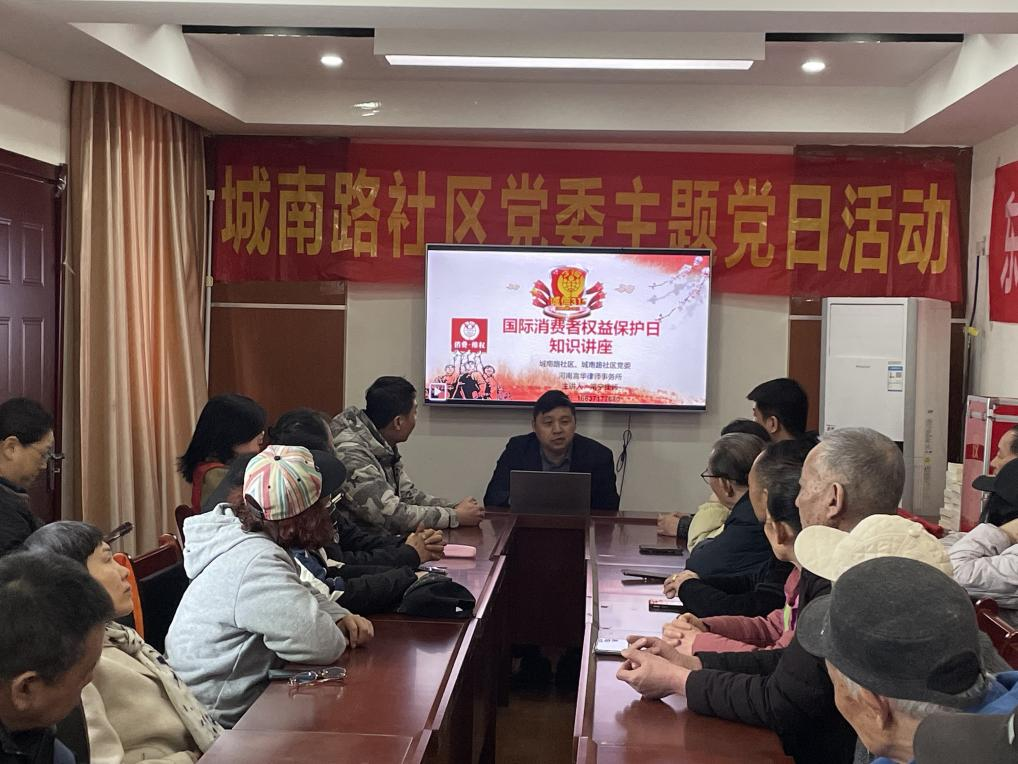 3月15日是国际消费者权益日,为推动消费者权益保护工作,增强消费者依法维权意识,提升消费者自我保护能力,同时促进经营者主动依法经营保障消费者权益,丰富法律知识,增强法治意识,弘扬法治精神。近日,管城区东大街街道工会联合城南路社区及河南嵩华律师事务所组织开展了“3.15”普法进社区活动。