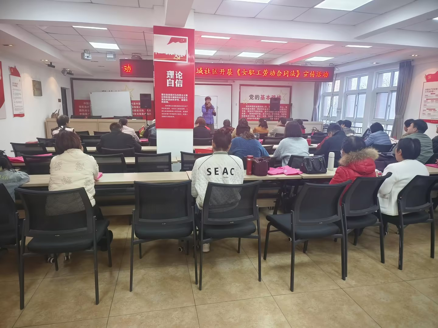 阳春三月,法润八里,为增强职工对劳动法律及女职工保护法的了解,管城区金岱街道工会联合橡树玫瑰城社区积极响应“强国复兴有我”主题号召,3月20日上午在社区二楼开展《女职工劳动合同法》宣传活动。