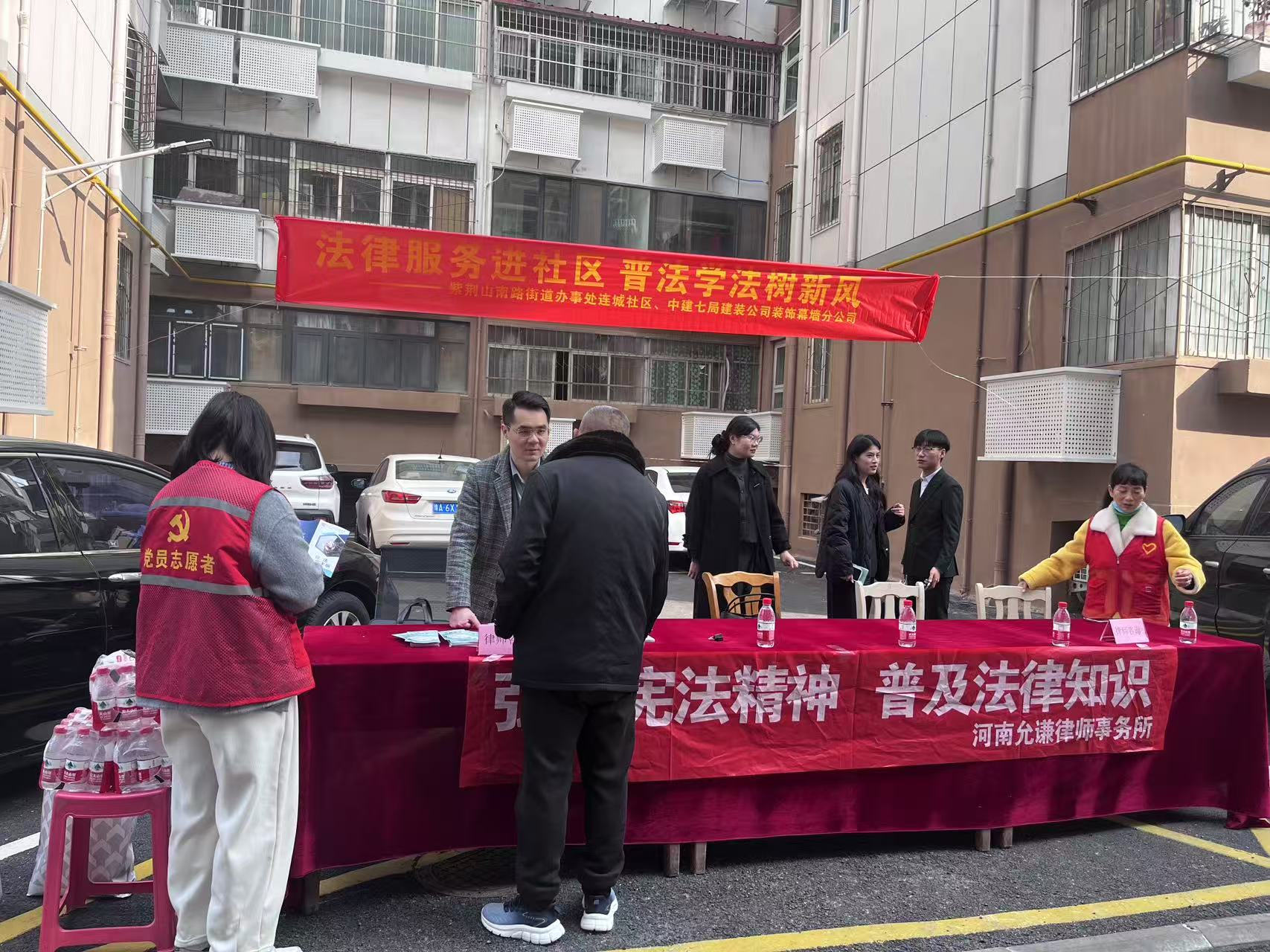 为增强辖区职工群众法律意识,提升女职工依法维权的能力,营造和谐稳定的社会环境,2025年3月11日,管城区紫南街道连城社区工会联合会联合允谦律师事务所,在南部阳光小区开展了“法律服务进社区,普法学法树新风”法律知识宣传教育活动。