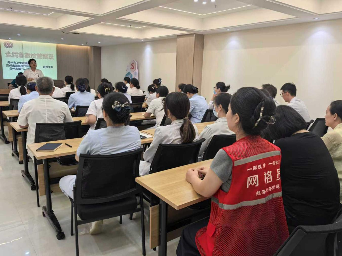 为提升全员应急自救互救能力,筑牢安全防护防线,管城区航海东路街道工会联合华钻社区于7月7日下午组织开展了应急救护知识培训活动。本次培训特别邀请了郑州市第七人民医院急救中心医护人员担任主讲。培训采用“理论+实操”相结合的方式,内容紧扣实际需要,共有40余人参与此次培训活动。