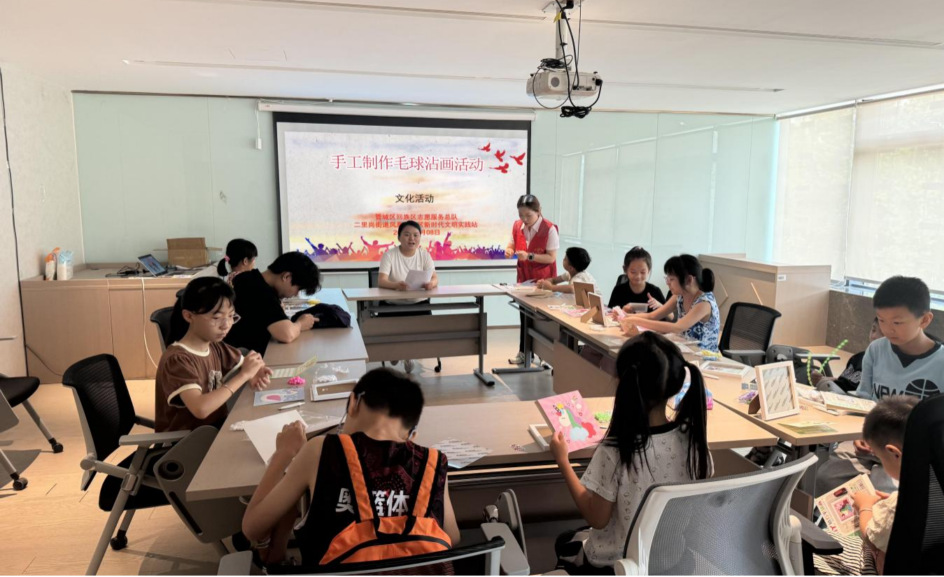 为丰富社区儿童课余生活,培养动手能力与创造力,7月24日,管城区二里岗和街道工会开展手工制作毛球沾画活动,吸引辖区众多孩子参与。
