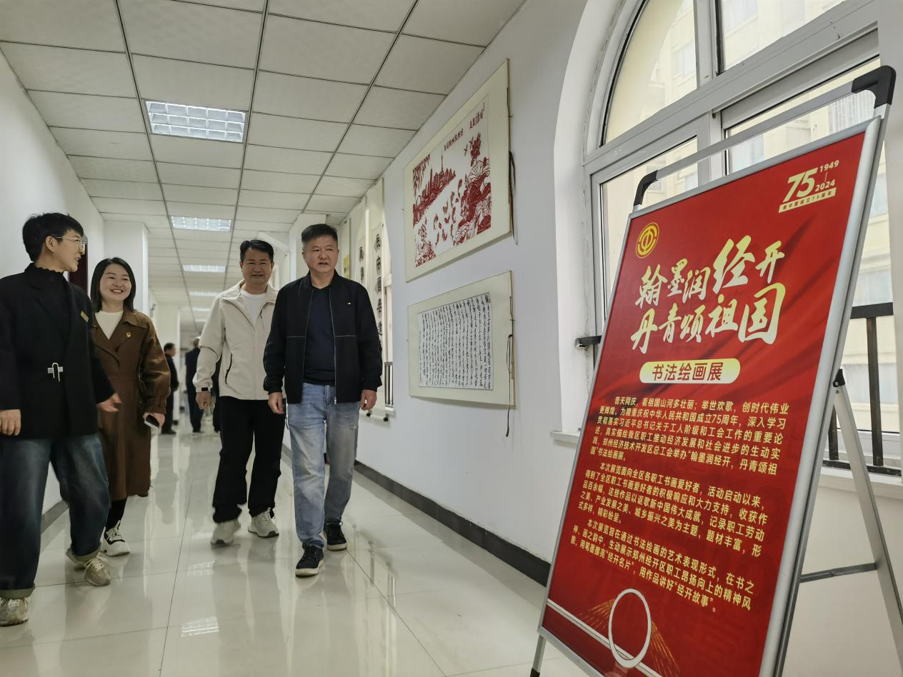 普天同庆,看祖国山河多壮丽;举世欢歌,创时代伟业更辉煌。为隆重庆祝中华人民共和国成立75周年,深入学习贯彻落实习近平总书记关于工人阶级和工会工作的重要论述,真实描绘我区职工推动经济发展和社会进步的生动实践。本次展览面向全区职工书画爱好者,活动启动以来,得到了全区广大职工书画爱好者的积极响应和大力支持,收获作品百余幅,这些作品以讴歌经开伟大成就,记录职工劳动之美、产业发展之美、城乡振兴之美为主题,题材丰富,形式多样,精彩纷呈。