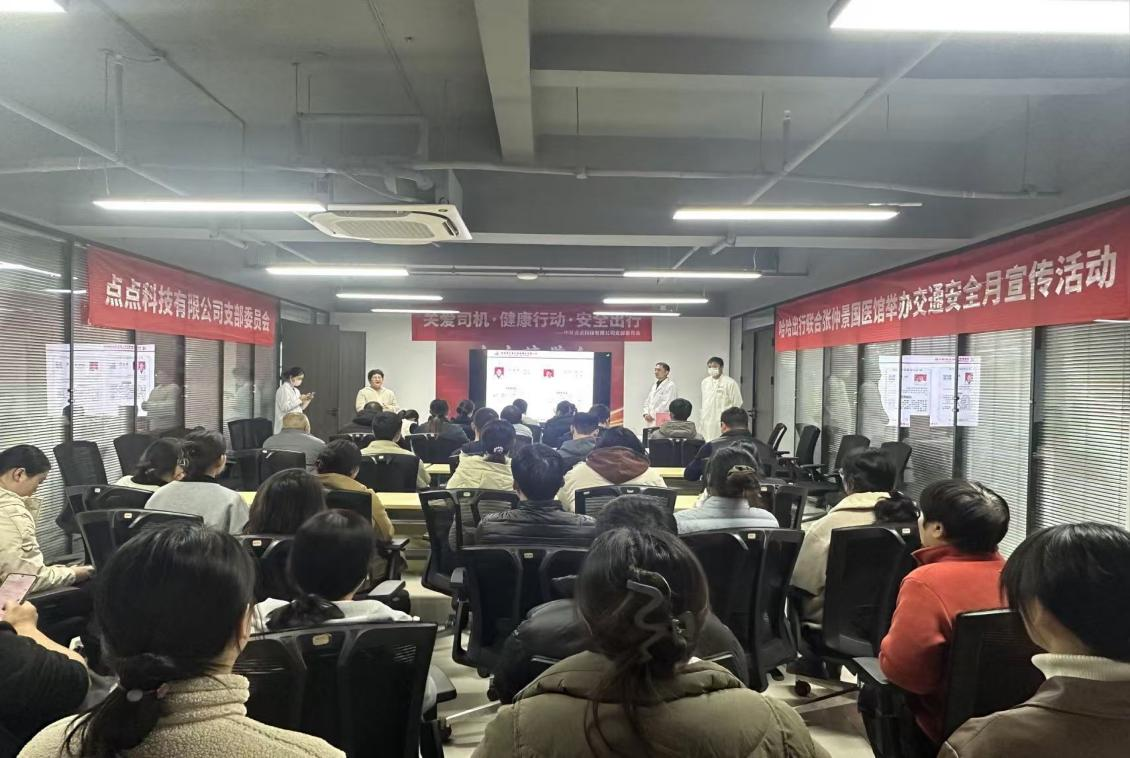 今年12月是第十三个“全国交通安全月”,为了积极响应国家关于加强道路交通安全、关爱交通从业人员的号召,在经开区总工会的关心支持下,12月13日点点科技工会联合张仲景国医馆,在点点科技成功举办了一场别开生面的“关爱司机·健康行动·安全出行”中医义诊活动。此次活动旨在通过中医传统医学的力量,为辛勤工作在网约车一线的司机师傅们提供免费的健康检查与咨询服务,传递工会对司机健康的深切关怀。