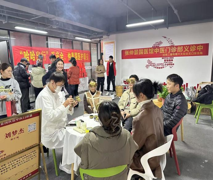 活动当天,尽管寒风凛冽,现场却暖意融融。来自张仲景国医馆的多位资深中医专家和医护人员,早早地在活动室布置好了诊台,准备好了各种中医诊疗工具。活动涵盖了中医脉诊、推拿按摩、眼部艾灸、健康咨询等多个环节,全方位、多角度地关注司机的身心健康。