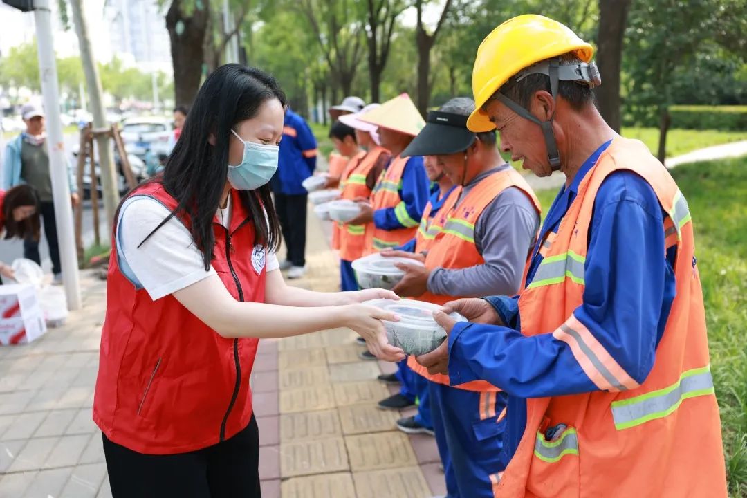 5月29日,郑州自贸区检察院开展“我们的节日·端午”主题活动。干警们将亲手制作的“爱心粽”送给一线环卫工人,以检察温度传递节日祝福。