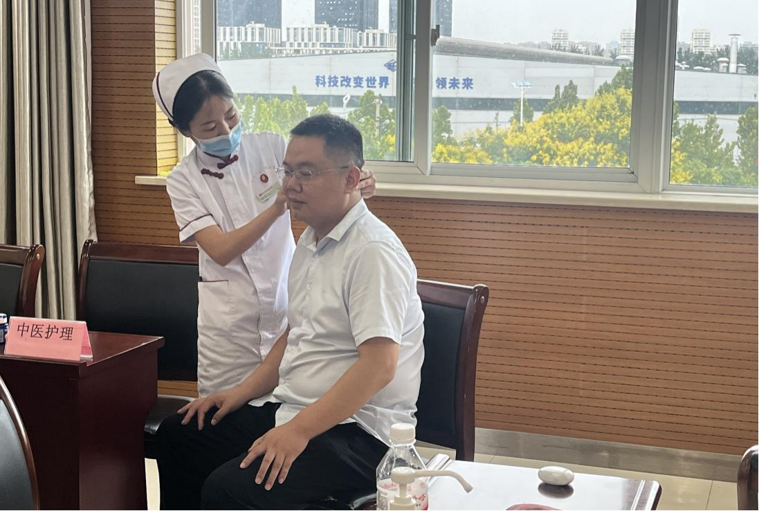活动现场,我区医疗服务队结合企业员工职业特点,精心设计了诊疗体验环节。为其提供中医脉诊、体格检查及健康咨询,帮助员工纠正久坐、久站等不良体态引发的健康隐患;中医护理护师通过耳穴贴敷、刮痧、火龙罐等疗法,为员工缓解疲劳、调理亚健康;推拿正骨医师针对颈肩腰腿痛等常见职业病,提供正骨推拿治疗;DMS理疗师则运用筋膜深层放松技术,帮助员工放松肌肉、改善血液循环。