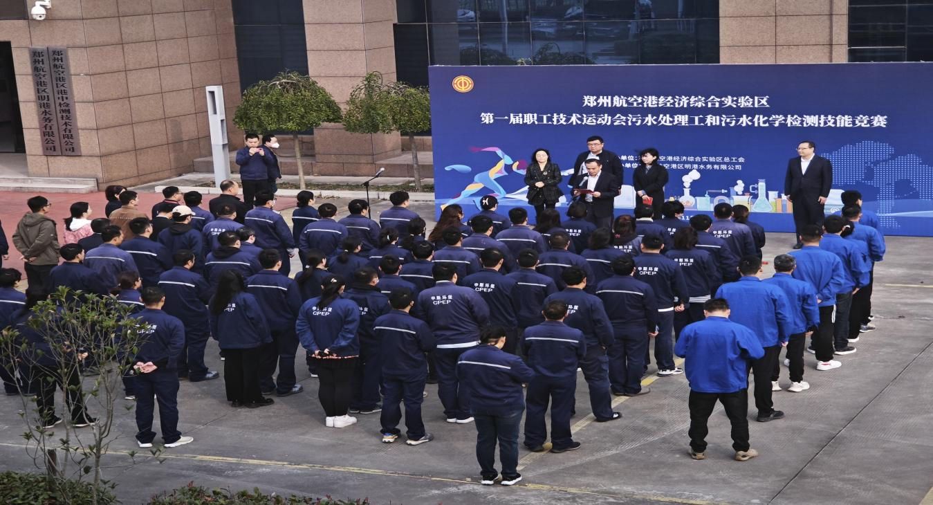 为深入学习贯彻党的二十大精神和习近平总书记关于产业工人队伍建设改革重要指示精神,扎实推进职工劳动和技能竞赛活动向纵深发展,2023年11月8日至10日,由航空港经济综合实验区总工会主办、明港水务工会承办的航空港区第一届职工技术运动会污水处理工和化学检测工竞赛项目在明港水务成功举行。本次竞赛以“奋进新征程·建功航空港”为主题,以“岗位练兵、技术比武”活动为载体,旨在激励各类技能人才立足岗位学习成才、扎根岗位出彩圆梦。来自航空港区3个污水处理厂、污水和化验岗位近70余名职工参加本次竞赛。航空港区党群部群团处副处长张珂、公司党办(工会)副主任周杰、明港水务总经理高彦生、港区水务分公司总经理周鹏、港区第一污水处理厂副总经理华慧敏出席竞赛开幕式,开幕式由明港水务工会主席、副总经理张聪主持。