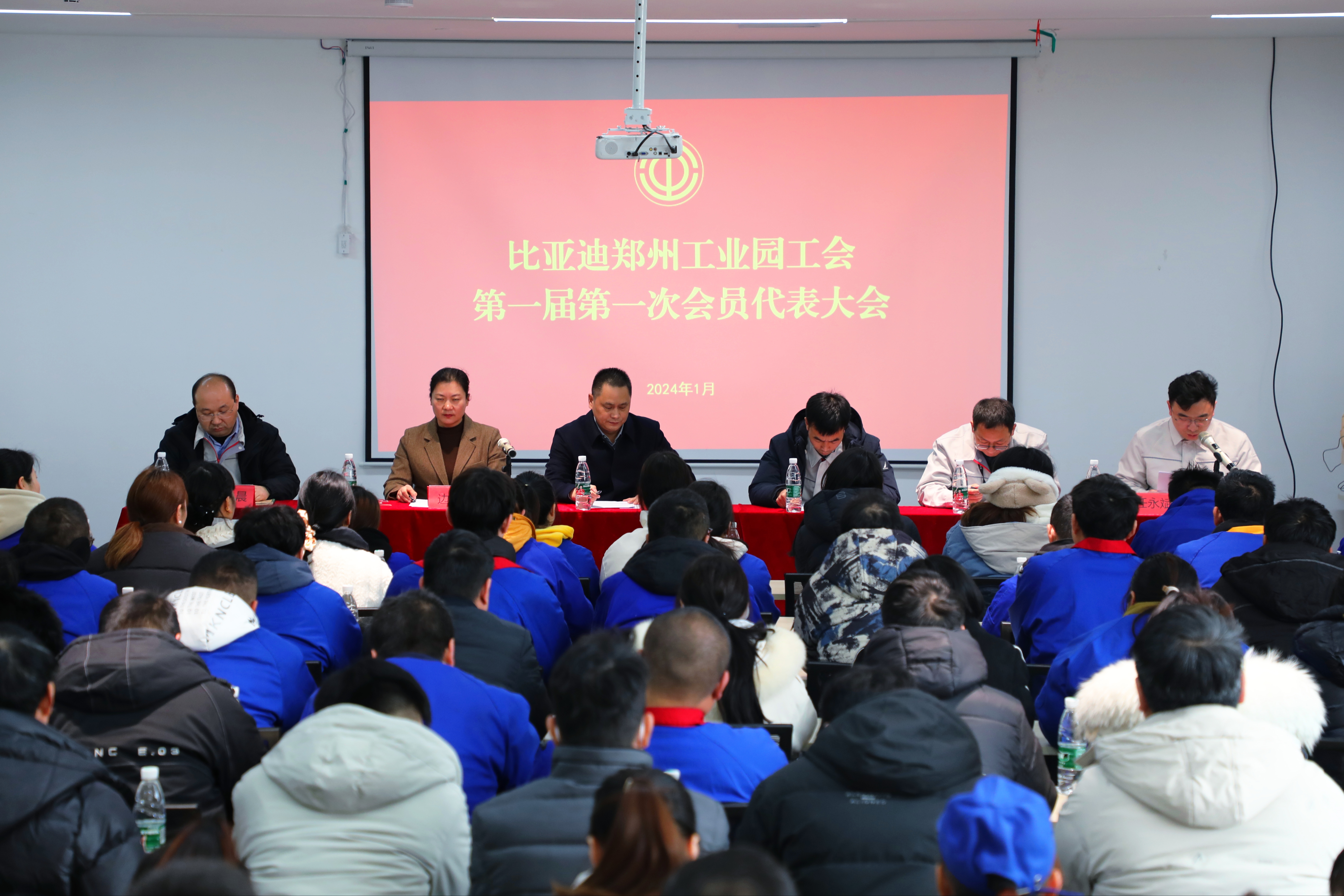 1月17日,比亚迪郑州工业园工会第一届会员代表大会第一次会议在航空港区召开,标志着我市又一重点企业工会正式成立。郑州市总工会党组成员、副主席李文平,航空港区党群工作部副部长边防出席会议,比亚迪郑州工业园相关领导及会员代表110余人参加会议。