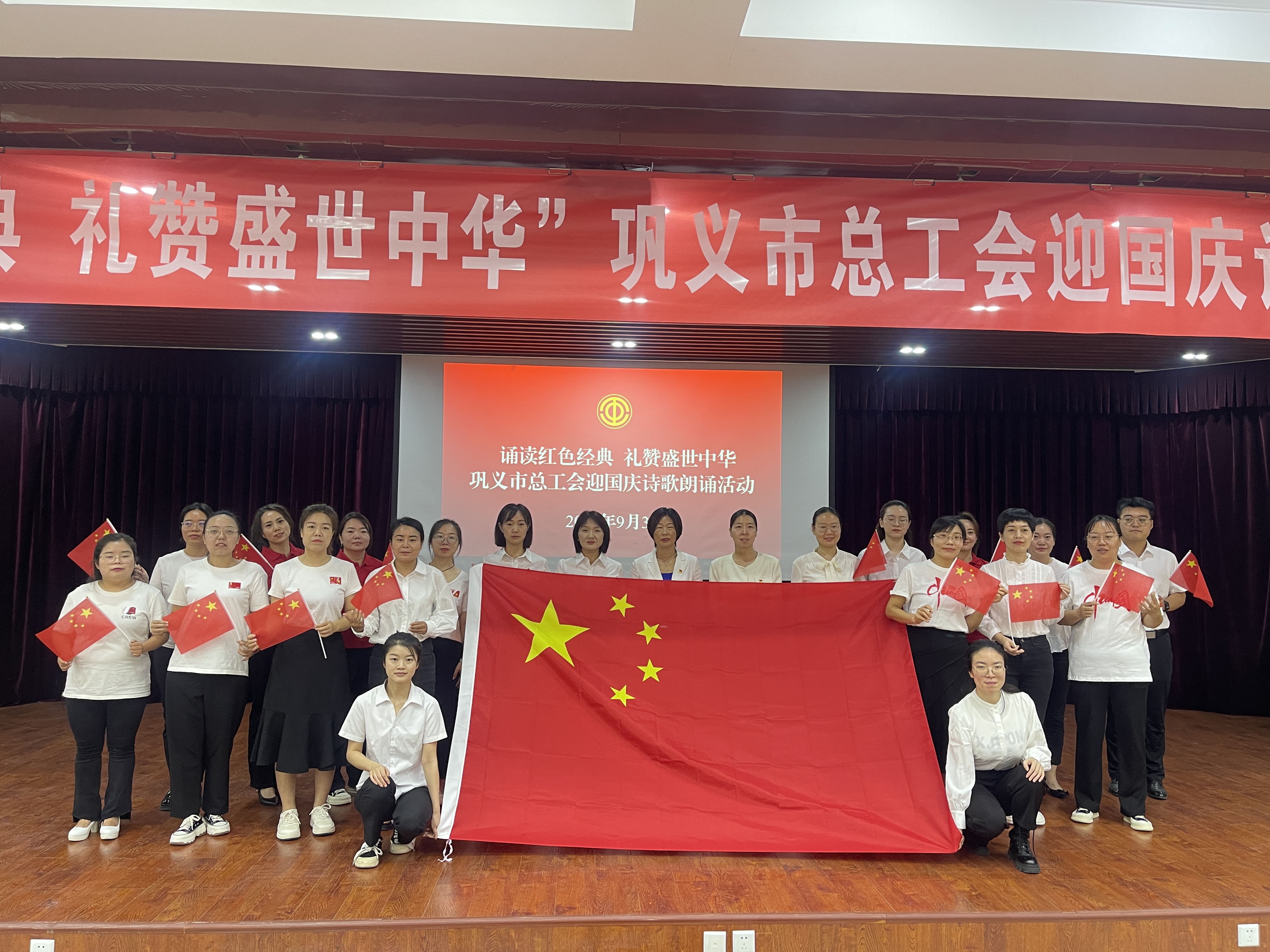为深入学习贯彻党的二十届三中全会精神,庆祝中华人民共和国成立75周年,激发广大干部职工的爱国情怀和民族自豪感。近日,巩义市总工会全体干部职工在二楼会议室开展“诵读红色经典 礼赞盛世中华”迎国庆诗歌朗诵活动。