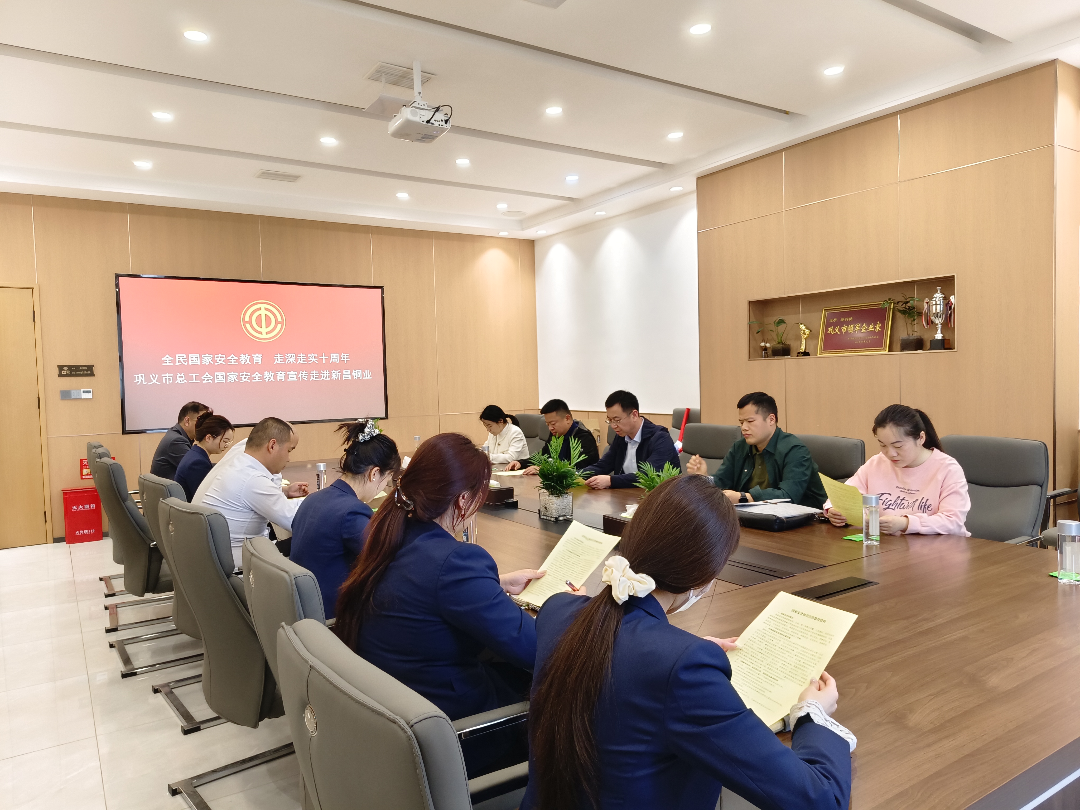 2025年是国家安全法颁布 10 周年,4月15日将迎来第十个全民国家安全教育日。为深入贯彻落实总体国家安全观,切实提高企业职工国家安全意识和风险防范能力,3月26日,巩义市总工会深入河南新昌铜业集团开展国家安全教育宣传活动。
