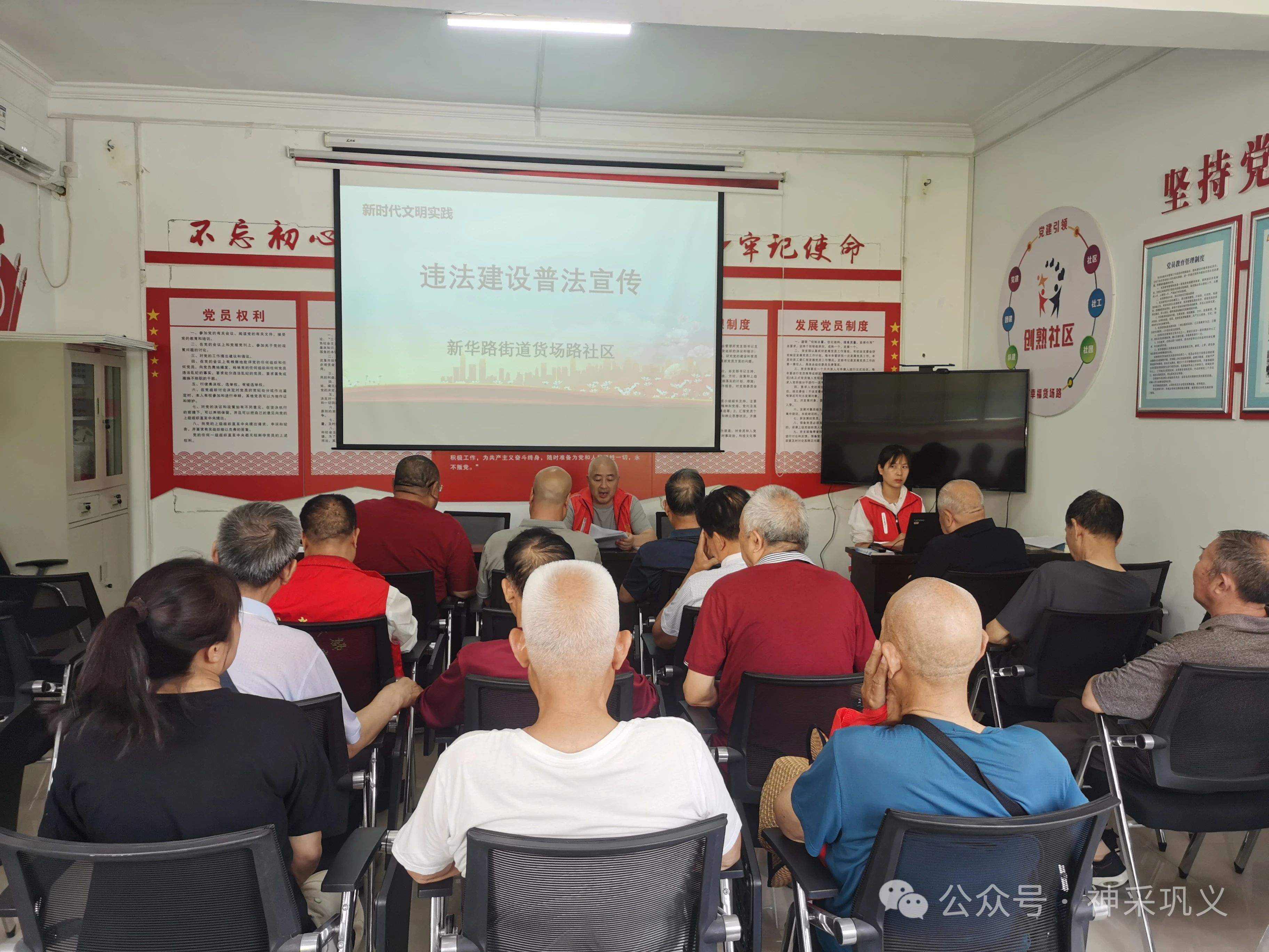 讲座中,杨律师通过典型案例以案释法,通俗易懂地讲解关于物业费缴纳、小区设施管理养护、保洁以及环境绿化等与生活息息相关的物业法律知识。现场居民与律师开展热烈的互动交流,咨询工作生活中遇到的物业管理难题以及发现楼院存在违法建筑该怎么办。杨律师结合当前实际向居民宣传普及违建的相关法律法规知识,普及违法建设等方面典型案例,引导居民自觉遵守法规,并鼓励居民发现私搭乱建现象及时监督举报,营造良好的拆违控违氛围。