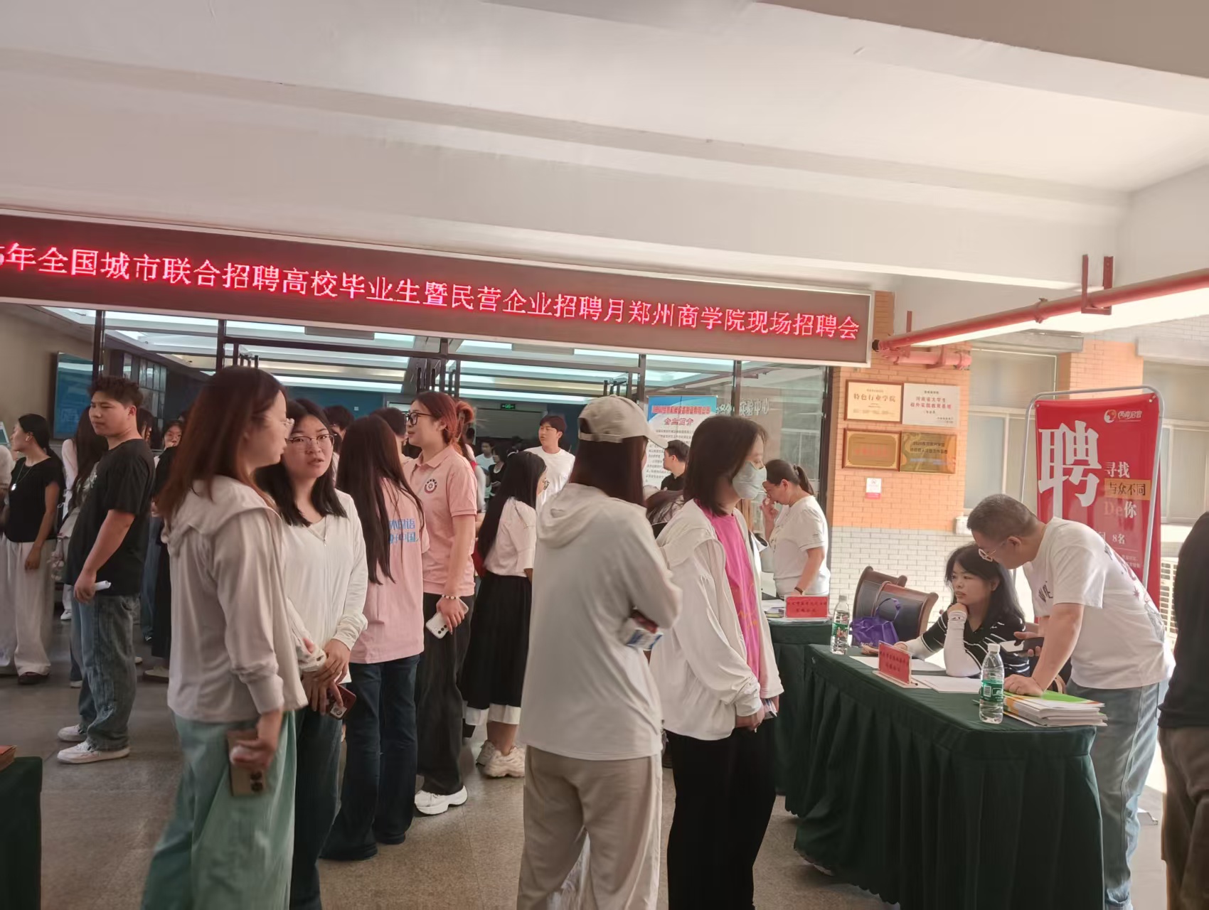 2025年5月21日,巩义市总工会联合市人力资源和社会保障局、郑州商学院在郑州商学院外国语学院举办“2025年全国城市联合招聘高校毕业生暨民营企业招聘月”高校毕业生招聘活动,为高校毕业生与用人单位搭建高效、便捷的沟通桥梁,助力毕业生高质量就业。