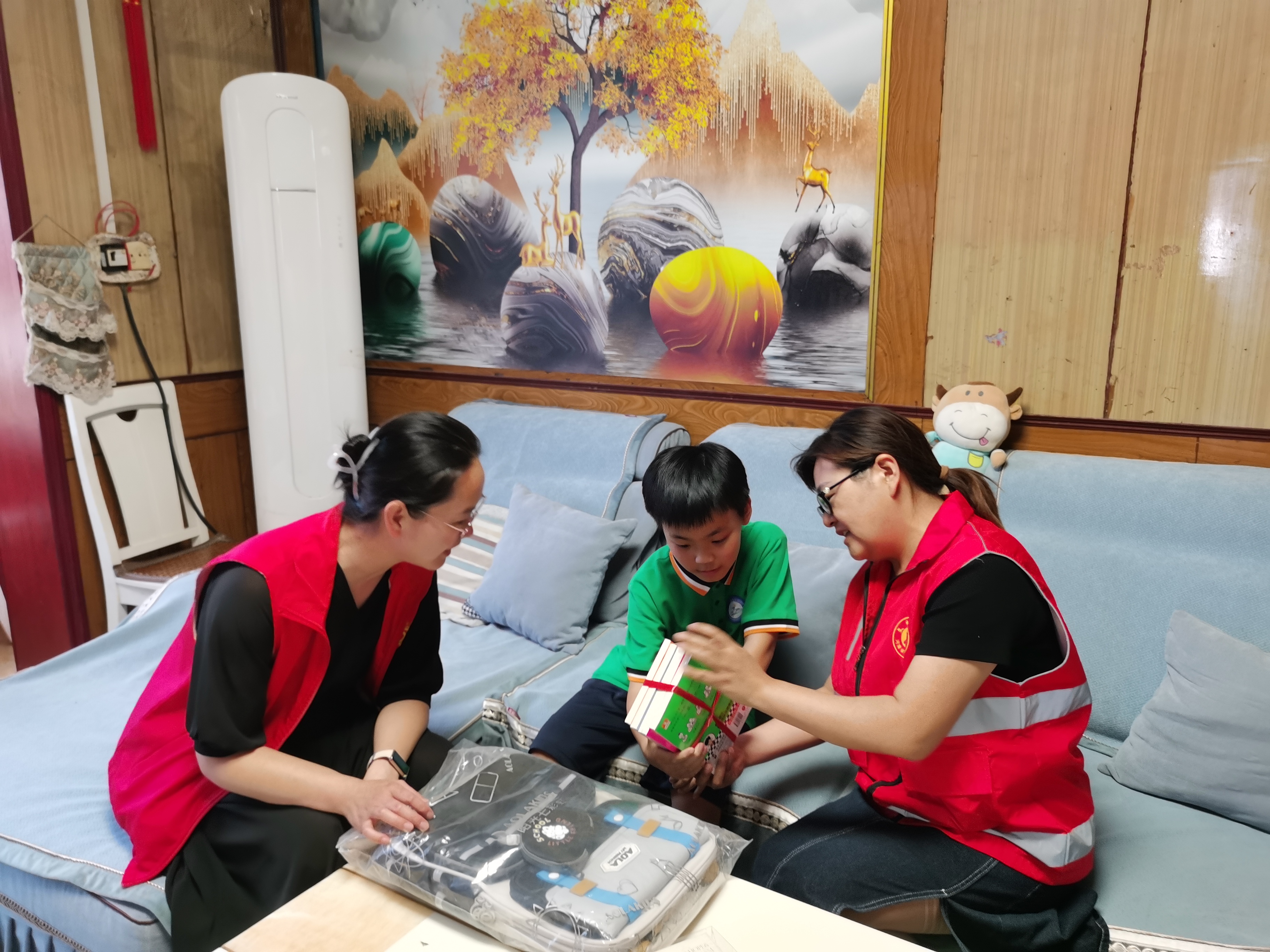在“六一”国际儿童节来临之际,巩义市新华路街道文化街社区工会开展了一场温馨的关爱活动,为困境儿童送上节日的祝福与温暖。2025年5月30日,社区工会工作人员带着精心准备的书包、课外书籍、文具盒等礼物,为辖区困境儿童小屹(化名)送去节日祝福和爱心礼物,用实际行动点亮孩子的童年。