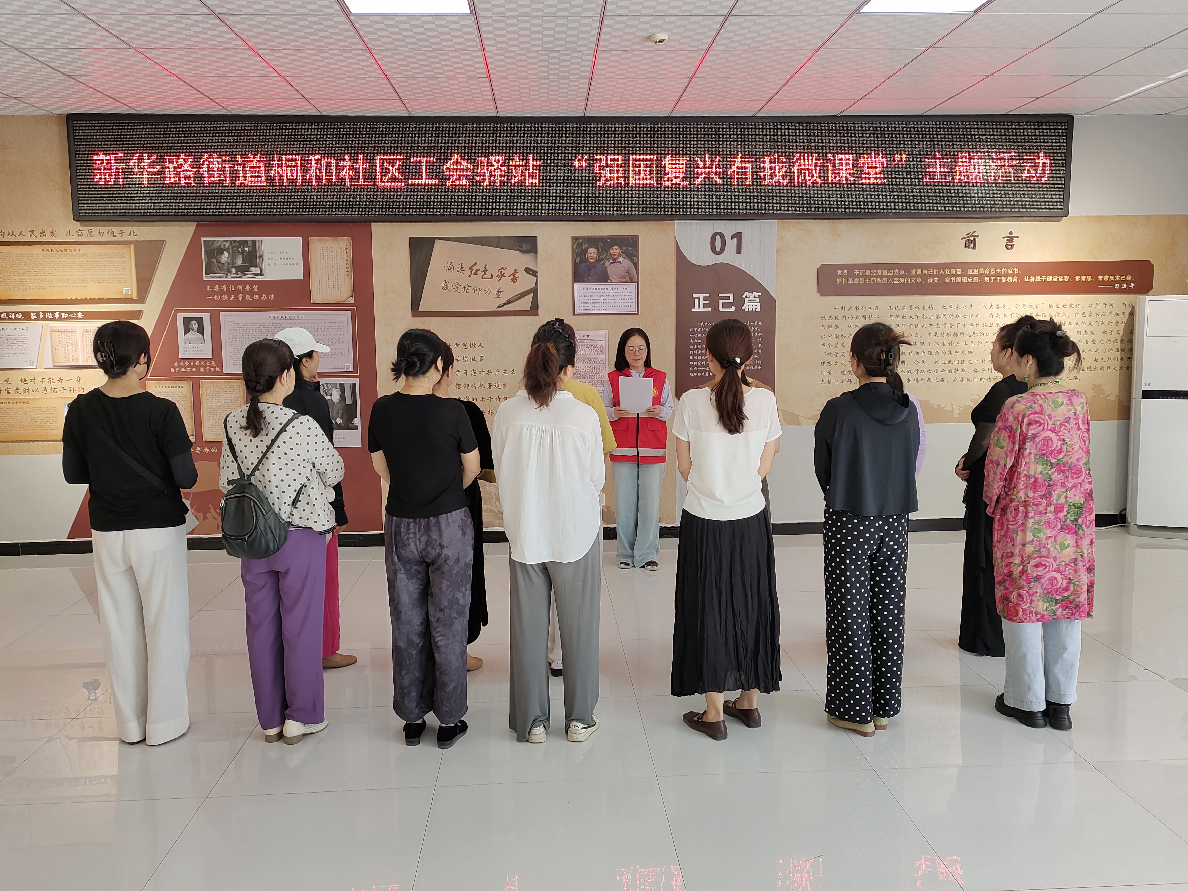 为引导广大职工团结引领职工群众听党话、感党恩、跟党走,进一步激发爱国热情和使命担当,6月4日,新华路街道桐和社区工会驿站组织开展“强国复兴有我微课堂”主题活动。