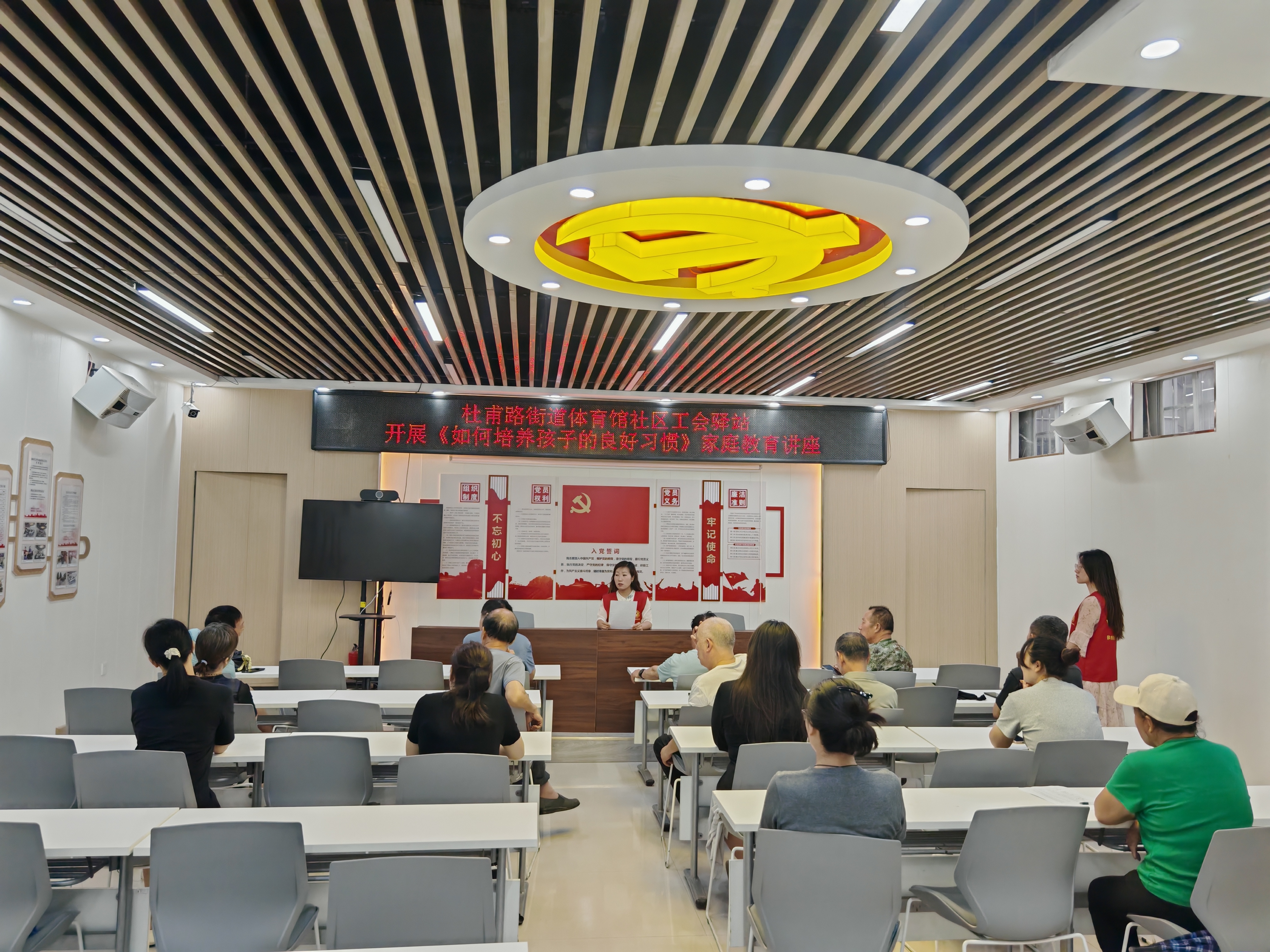 为了更好地推广科学有效的家庭教育方法,提高家长正确教育孩子的能力,传播先进的家庭教育理念,6月24日,杜甫路街道体育馆社区工会驿站开展《如何教育孩子养成良好的习惯》家庭教育讲座。