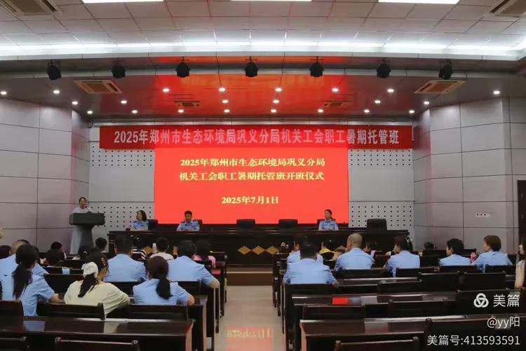 郑州市生态环境局巩义分局第五季暑期托管班正式开班,局领导为开班仪式致辞,并为孩子们分发奖品等学习用具,勉励孩子们好好学习,快乐成长,解决职工家长“看护难”的后顾之忧,让孩子们在安全、快乐、有意义的环境中度过暑假。