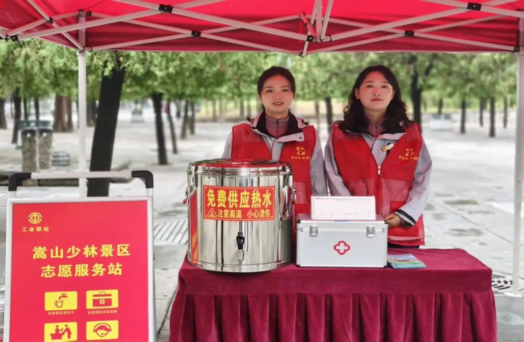 假日期间,少林景区工会驿站、嵩阳景区工会驿站、地质博物馆工会驿站以及中岳景区分别在游客中心、景区入口处等游客集中区域设立志愿服务台共计10个,为游客提供白开水、急救药品、游览咨询等服务。