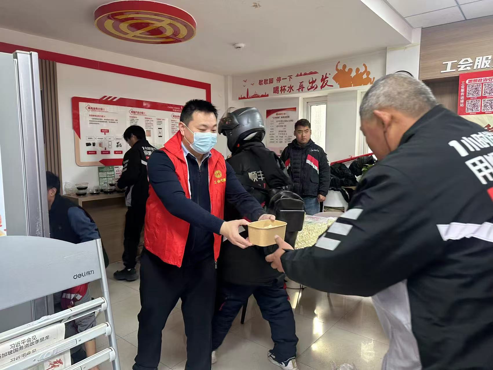 此次工会驿站包饺子主题党日活动,不仅为快递小哥们送上了一份冬日的温暖与慰藉,更以实际行动践行了党的群众路线,充分发挥了党员的先锋模范作用,有效增强了党组织的凝聚力与向心力。同时,也进一步彰显了工会驿站作为服务职工群众前沿阵地的重要作用,为构建和谐美好的社会劳动关系注入了强大动力。下一步,市总工会将依托工会驿站持续开展更多丰富多彩、形式多样且富有意义的党员志愿服务活动,持续关注新业态群体和户外劳动者的需求,为他们提供更加贴心、优质的服务与帮助,携手共进,共创美好未来。