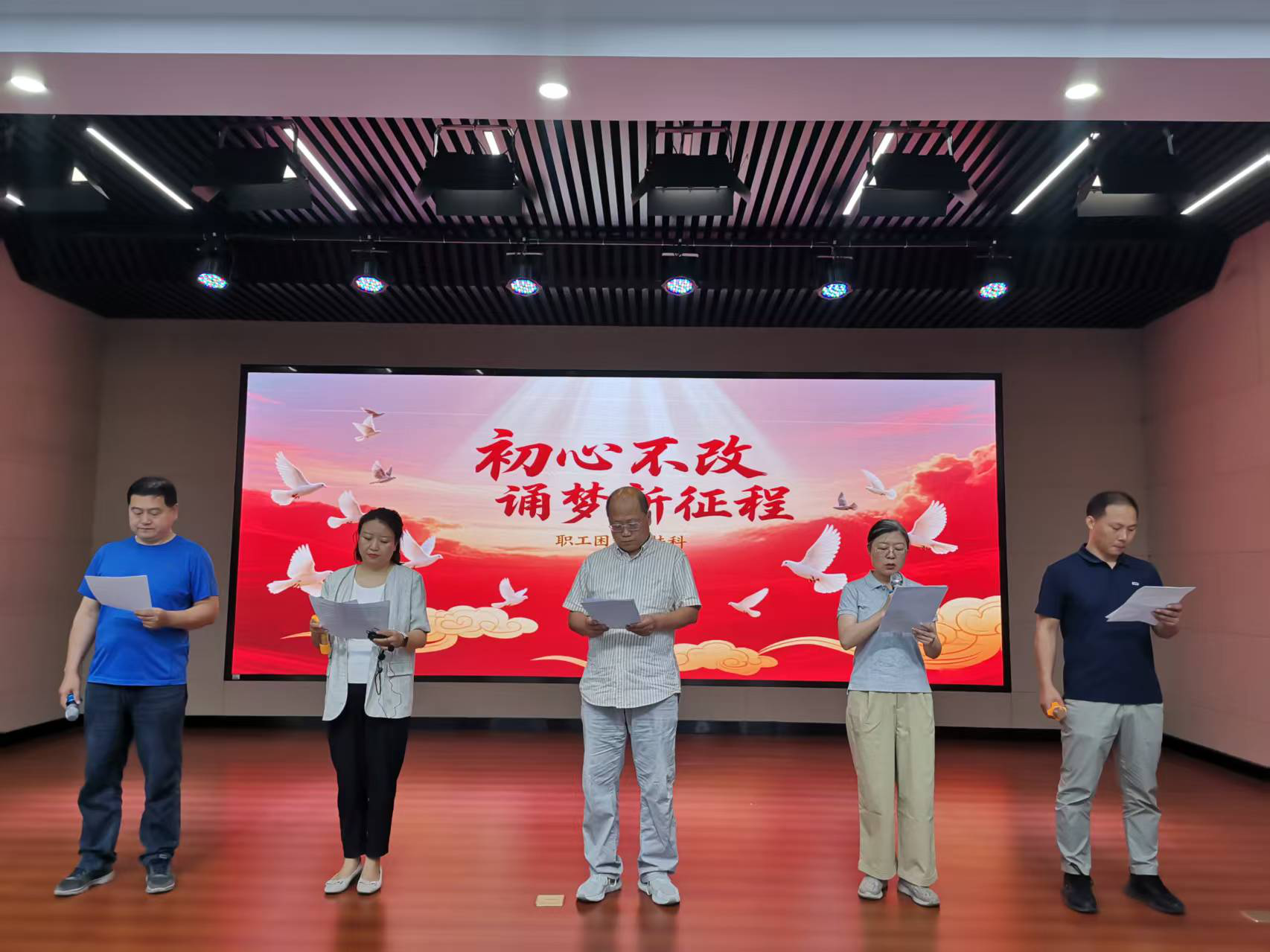 6月25日,郑州市职工服务中心党总支组织开展了“凝心铸魂跟党走 团结奋斗新征程”迎七一主题诵读活动。党员干部们通过深情诵读红色经典篇章、重温党的光辉历程和伟大成就,在铿锵有力的词句中感悟思想伟力,汲取奋进力量。此次活动有效激发了全体党员的爱党爱国热情,进一步筑牢了信仰之基,强化了忠诚于党、竭诚服务职工的初心使命。