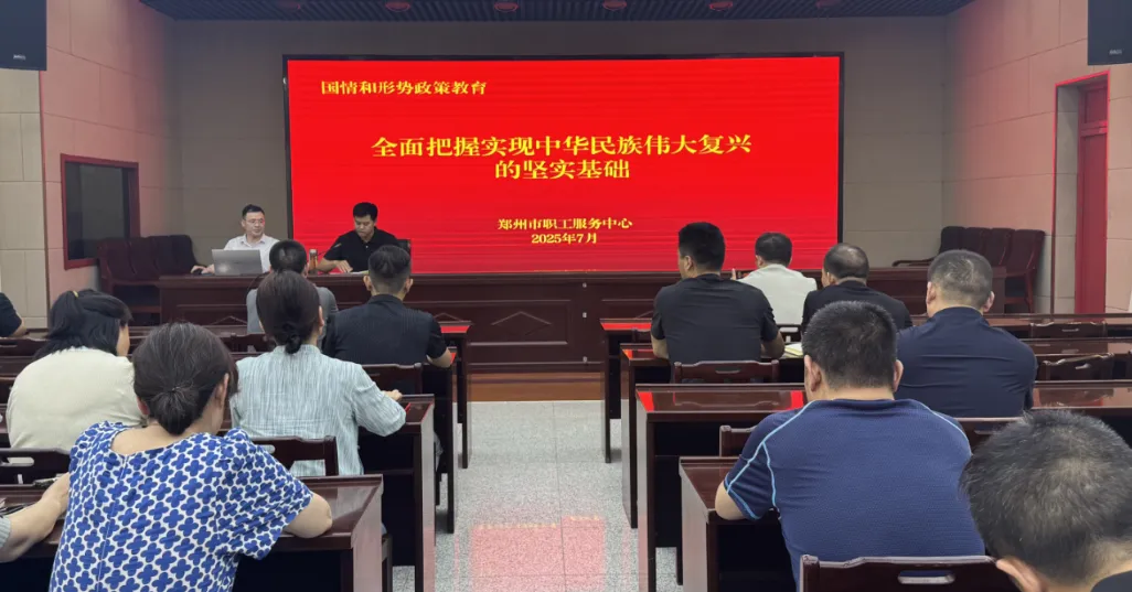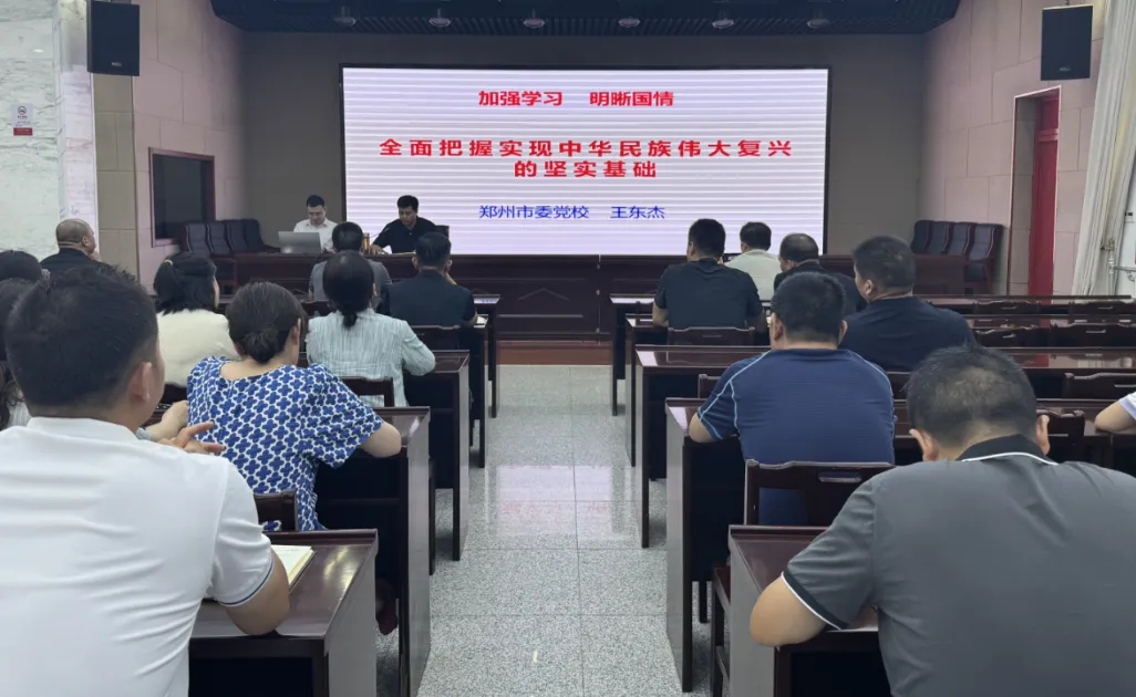 为提升干部职工理论素养,凝聚奋进力量,7月3日下午,郑州市职工服务中心特邀郑州市委党校统战理论教研部副主任、副教授王东杰教授,作题为《全面把握实现中华民族伟大复兴的坚实基础》的专题讲座。