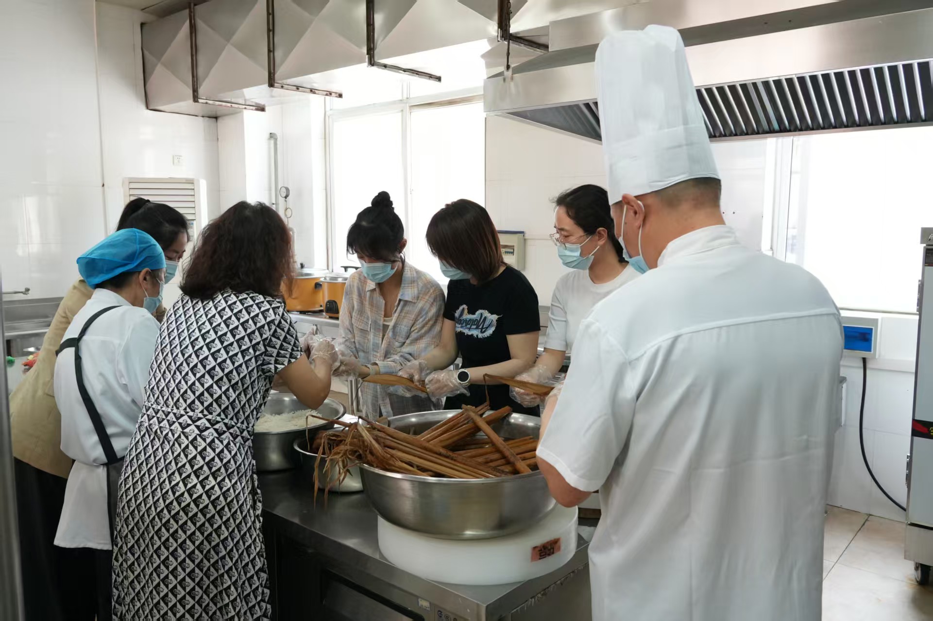 最具实践性的包粽子环节将活动推向高潮。机关食堂内,粽叶、糯米、红枣、咸蛋黄等材料整齐摆放,干部职工分成若干小组,围桌协作。经验丰富的“能手”主动示范:“粽叶要先卷成漏斗状,放米时别太满,捆绳要松紧适中……”新手们边学边练,虽手法生疏却热情高涨,有人包出“三角粽”“长条形粽”等创意造型,引来阵阵笑声。粽叶飘香间,大家你帮我递线、我教你裹叶,在互帮互助中拉近了距离,团队默契度在指尖协作中悄然提升。