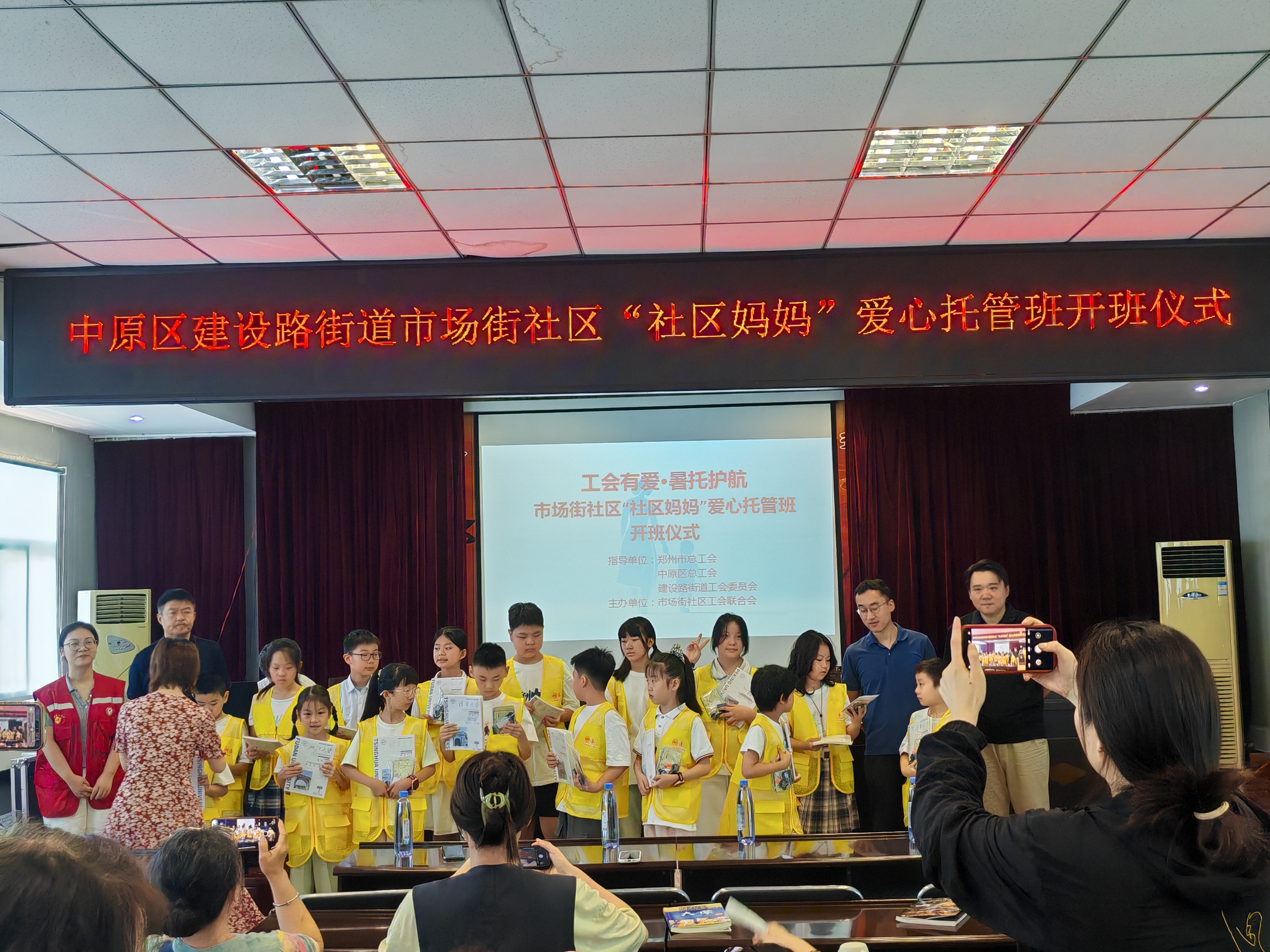 为深化“我为群众办实事”实践活动,切实解决职工家庭暑期子女看护难题,7月2日上午,郑州市总工会联合建设路街道市场街社区开展了“社区妈妈”爱心托管班开班仪式活动,以实际行动回应职工群众关切,用心用情构筑职工家庭暑期暖心服务网,让职工子女在暑期中有人管、有学上、有乐寻。