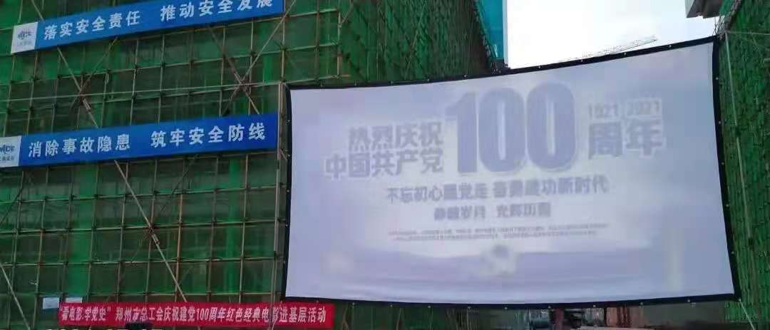 在建党100周年喜庆时刻,红色经典电影进工地给工人们带来了惊喜,丰富了他们的业余文化生活。工会作为娘家人,让身处异地的建设者感受到贴心的温暖和亲情,激发了建设者们为推动郑州市重点工程建设、为加快郑州国家中心城市现代化建设拼搏奉献的热情和干劲。