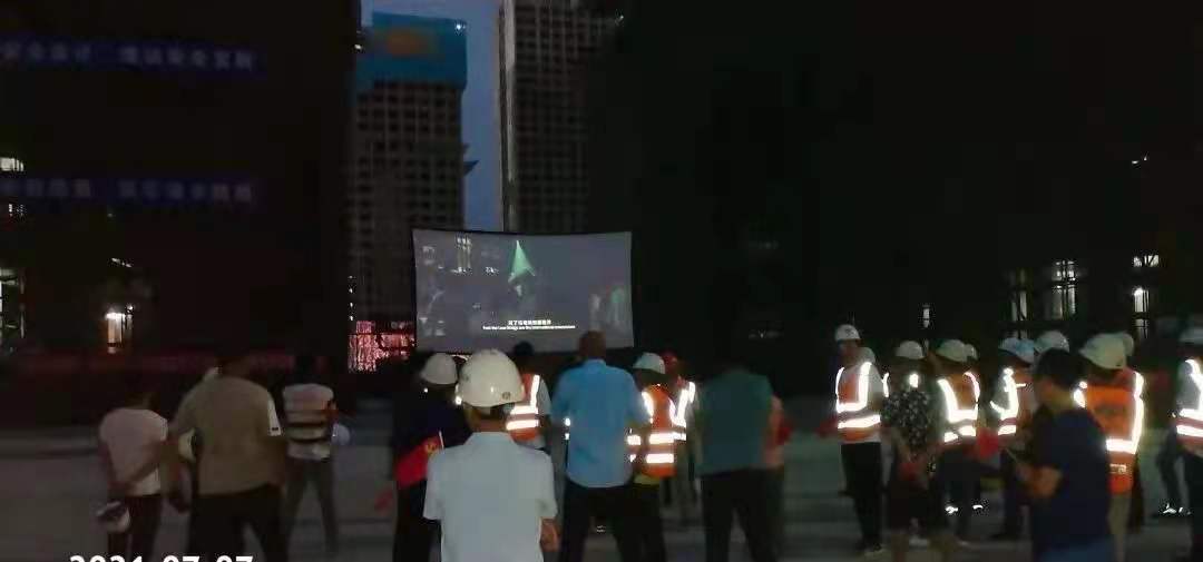7月7号晚上,“看电影 学党史”郑州市总工会庆祝建党100周年红色经典电影进基层展映活动走进郑州楷林广场工地,为建筑工人送去了精神食粮。
