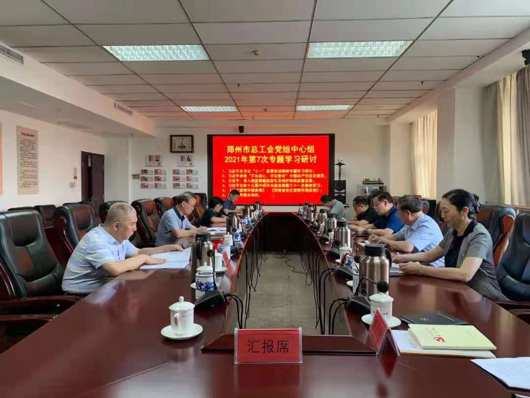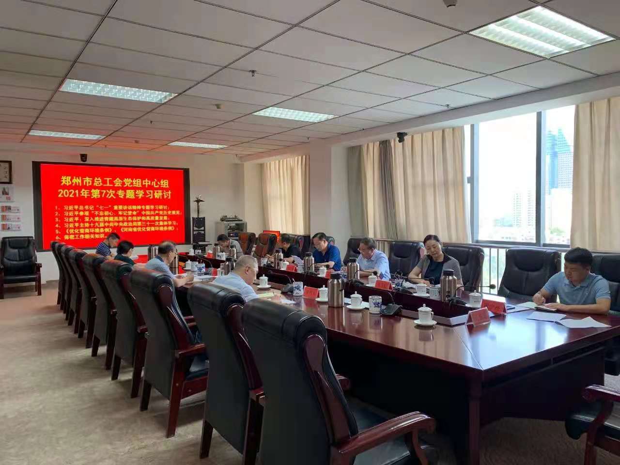 7月9日,郑州市总工会党组中心组召开学习习近平总书记“七一”重要讲话精神专题研讨会,围绕学习贯彻习近平总书记在庆祝中国共产党成立100周年大会上的重要讲话精神、在“七一勋章”颁授仪式上的重要讲话精神、在参观“‘不忘初心、牢记使命’中国共产党历史展览”时的重要讲话精神等,开展专题学习研讨交流。市一级巡视员,市总工会党组书记、主席赵新中主持研讨会并讲话。市委党史学习教育第三巡回指导组组长张福清到会指导。