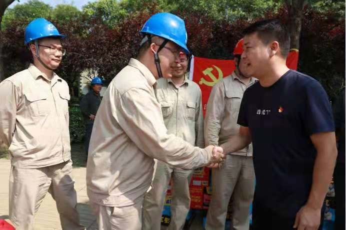 7月25日下午,市总工会副主席宋少丹一行到郑东新区高校园二配,看望慰问国网江苏公司一线电力抢修人员,对他们不怕苦、不怕累的工作作风、一丝不苟、精益求精的工作精神给予高度赞扬,对他们在暴雨过后为保障人民生产、生活用电所付出的辛勤劳动表示感谢。希望大家发扬精神、继续战斗,和广大人民群众同心协力、共渡难关。