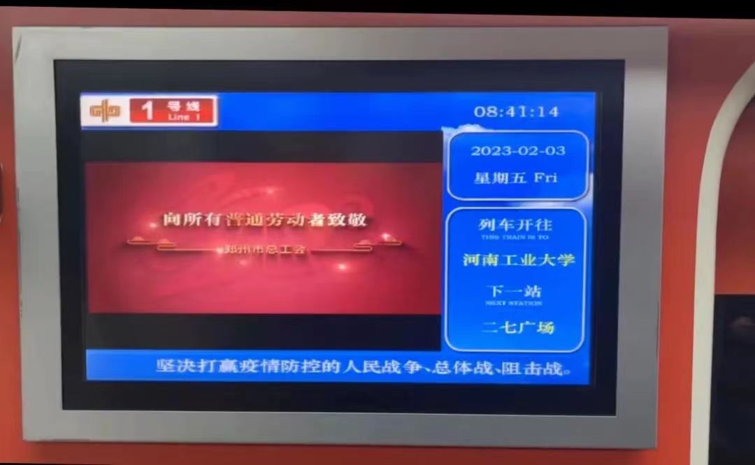 2月2日早晨,在郑州市五一公园站乘坐地铁的市民惊喜地发现,站台上和车厢里的电视屏幕循环播放着郑州市总工会推出的“致敬劳动者”系列视频。公交车长、快递小哥等普通劳动者的身影扮靓了城市窗口,引发职工群众强烈共鸣。