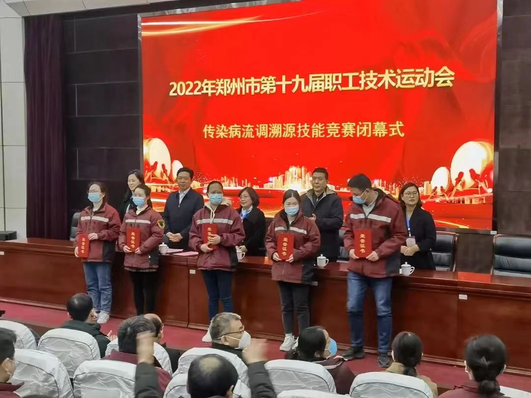 2月8日,郑州市第十九届职工技术运动会传染病防控技能竞赛在郑州市疾病预防控制中心圆满落下帷幕,本次竞赛共评出特等奖1名,一等奖4名,二等奖5名;团体一等奖1个,二等奖2个,三等奖3个,优秀组织奖2个。郑州市总工会二级调研员靳荣欣、郑州市卫生健康委员会副主任许迎喜、郑州市疾病预防控制中心主任吴景瑜到现场指导并为获奖选手颁奖。