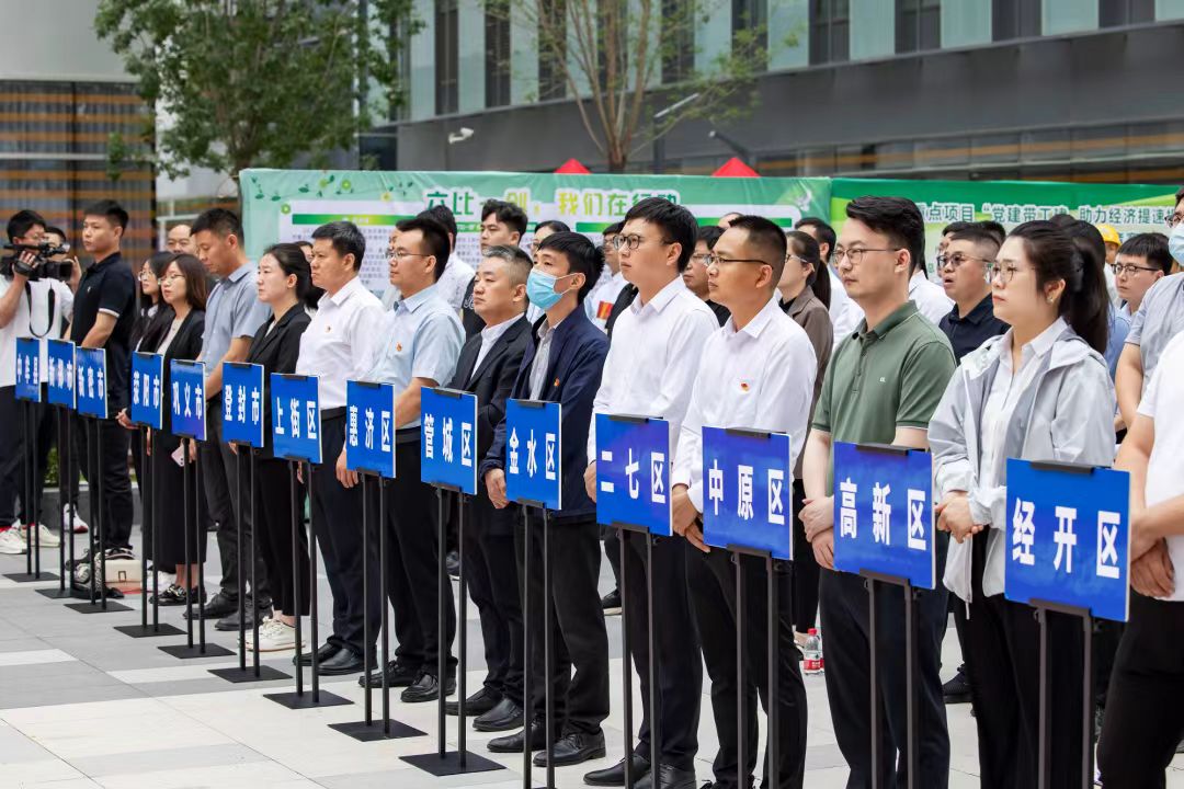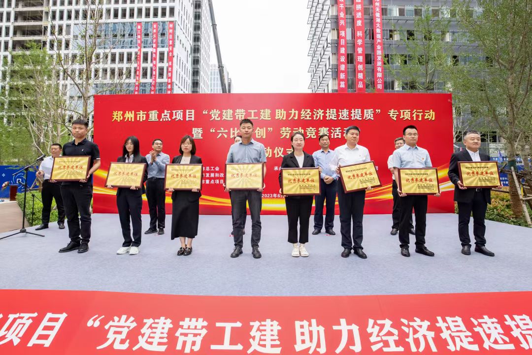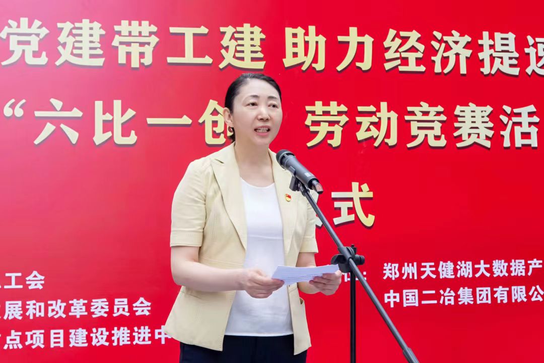 为不断扩大党组织和工会组织在郑州市重大项目、主导产业和“专精特新”企业中的有效覆盖,团结带领广大党员干部和职工群众更好地服务郑州市经济社会发展大局,6月2日,郑州市总工会、市发展和改革委员会、市重点项目建设推进中心在天健湖智联网产业园举办2023年全市重点项目“党建带工建 助力经济提速提质”暨“六比一创”劳动竞赛活动启动仪式,以此带动郑州经济社会发展的重大项目质量更优、效益更高、竞争更强。