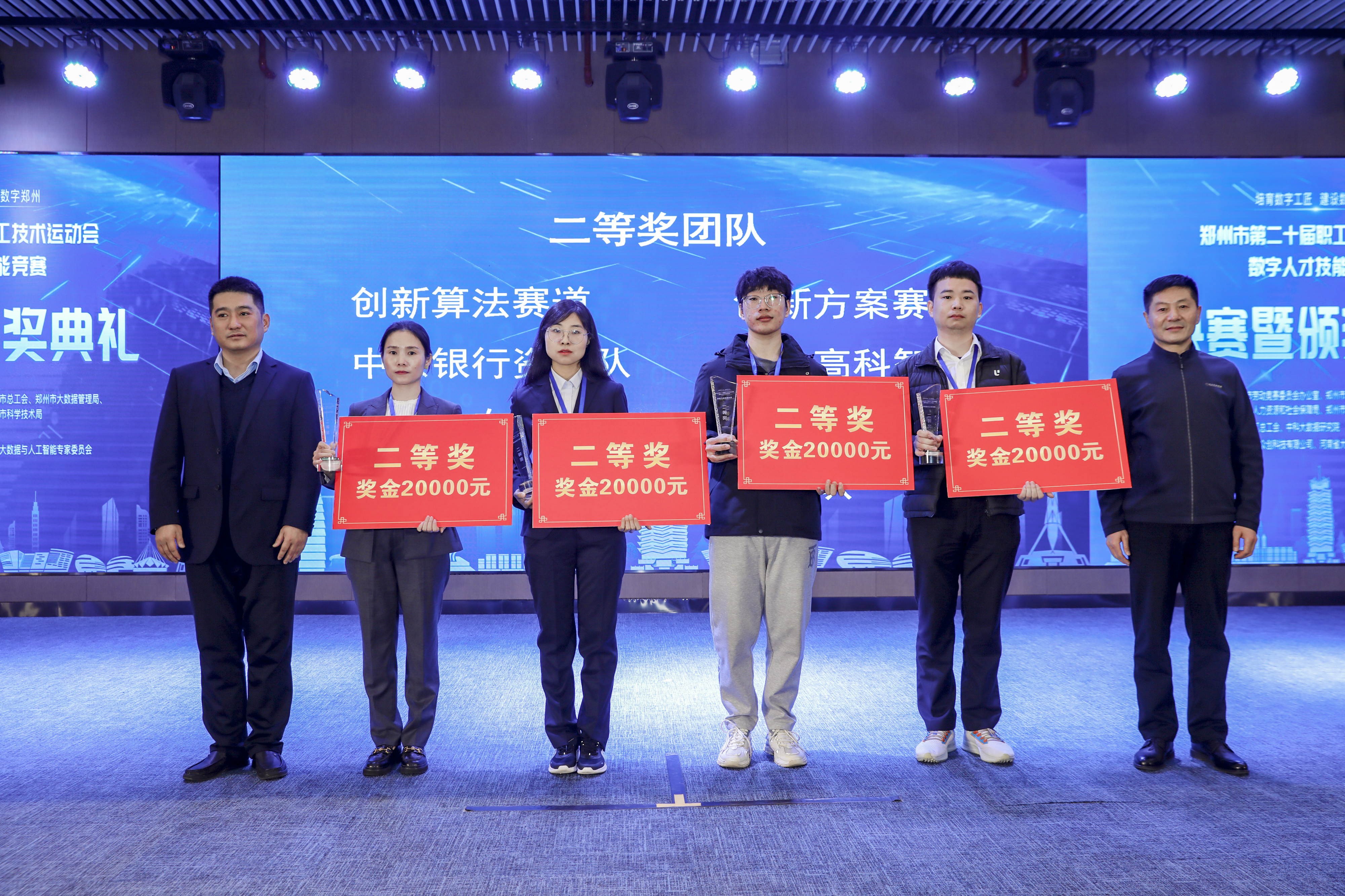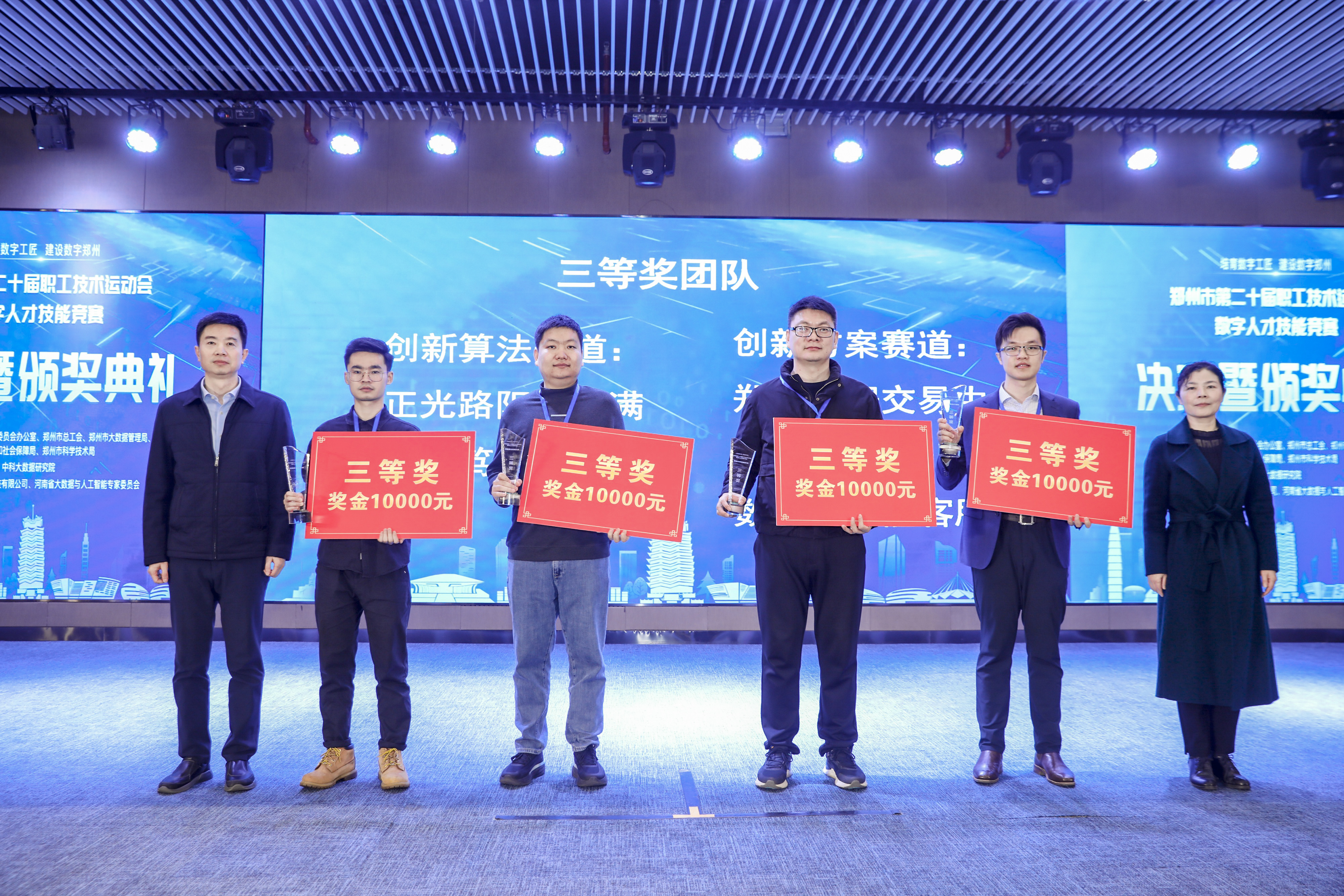 随后颁奖典礼对获奖团队进行表彰。一等奖团队,奖金30000元,授予队长“郑州市技术状元”,符合条件的按程序申报郑州市“五一劳动奖章”;二等奖团队,奖金20000元,授予队长“郑州市技术标兵”;三等奖团队,奖金10000元,授予队长“郑州市技术标兵”。同时,对数字人才知识竞赛前500名奖励价值200元的奖品。