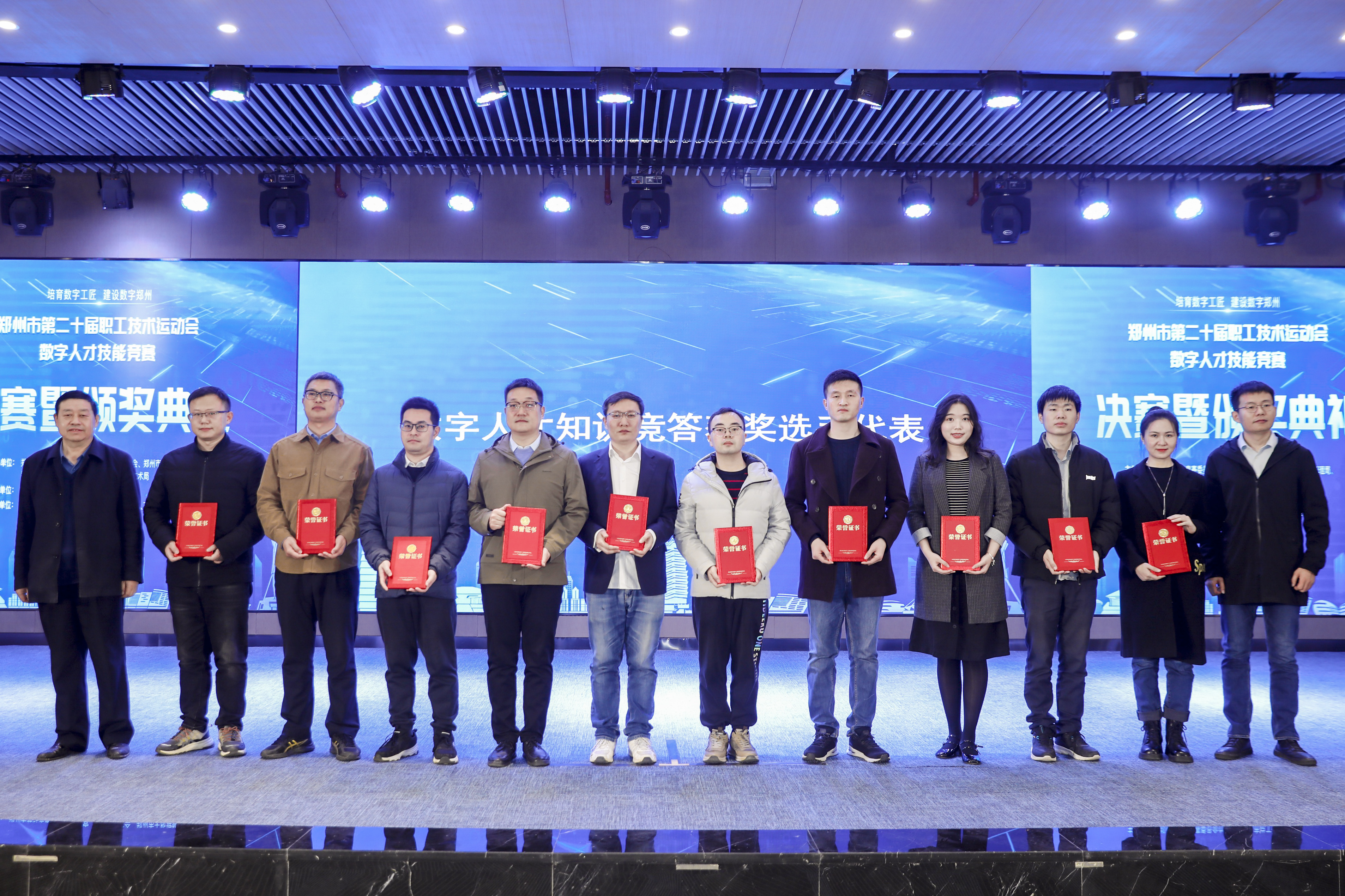 12月9日,由郑州市劳动竞赛委员会办公室、郑州市总工会、郑州市大数据管理局、郑州市人力资源和社会保障局、郑州市科学技术局主办的郑州市第二十届职工技术运动会数字人才技能竞赛决赛暨颁奖典礼成功举行,郑州市总工会党组书记、常务副主席王玉红出席并讲话。颁奖典礼上,接过证书和奖金的获奖团队选手,为以“培育数字工匠、建设数字郑州”为主题的数字人才技能竞赛画上圆满句号。